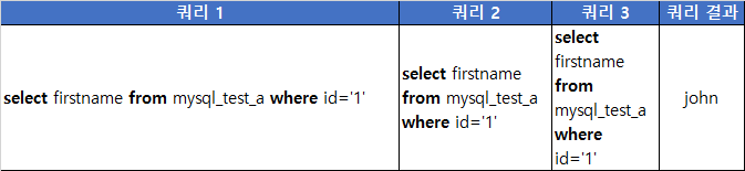 - 게다가 쿼리 내 개행문자는 쿼리결과에 영향을 주지 않는 것을 알 수 있다. (아래 표 참고)