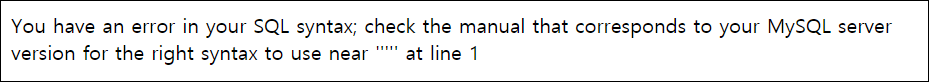 - 처음엔 에러유발 부분에 싱글쿼터(') 하나씩만 넣어보거나 char 함수로 싱글쿼터 문자만 넣거나 등등 해봤지만 조건문과 관계없이 에러 나거나 아예 에러가 나지 않았다. 맨 땅에 해딩하는 시간을 가졌다.