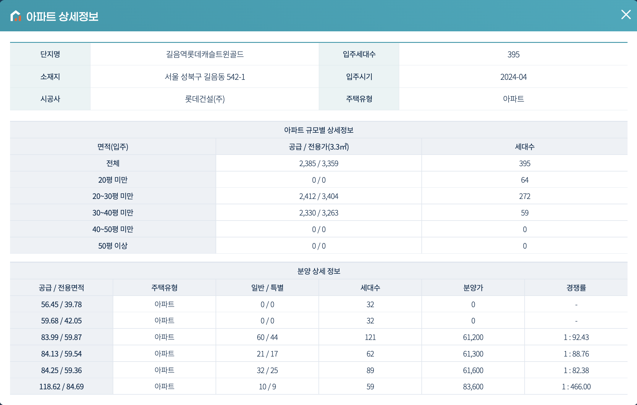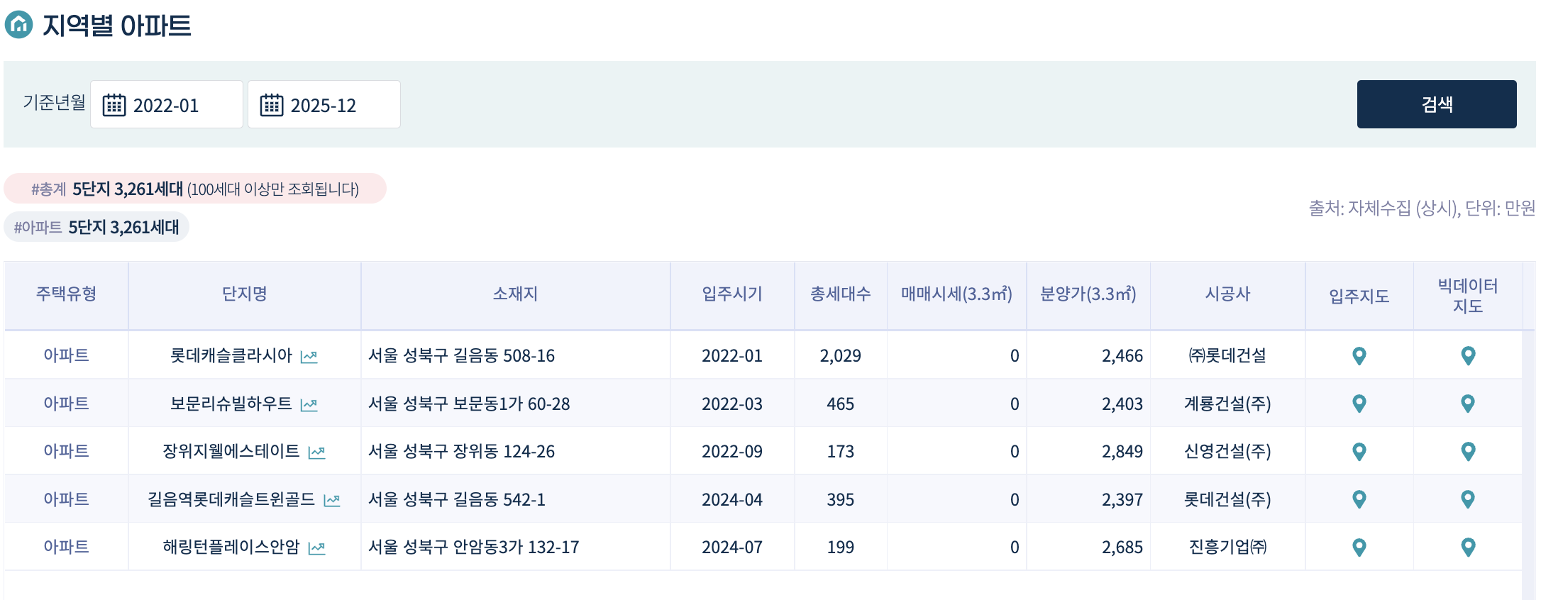 | 1급지 | 길음동 롯데캐슬클라시아 | 33 | 16.2 | 4,890 | 2022 | |