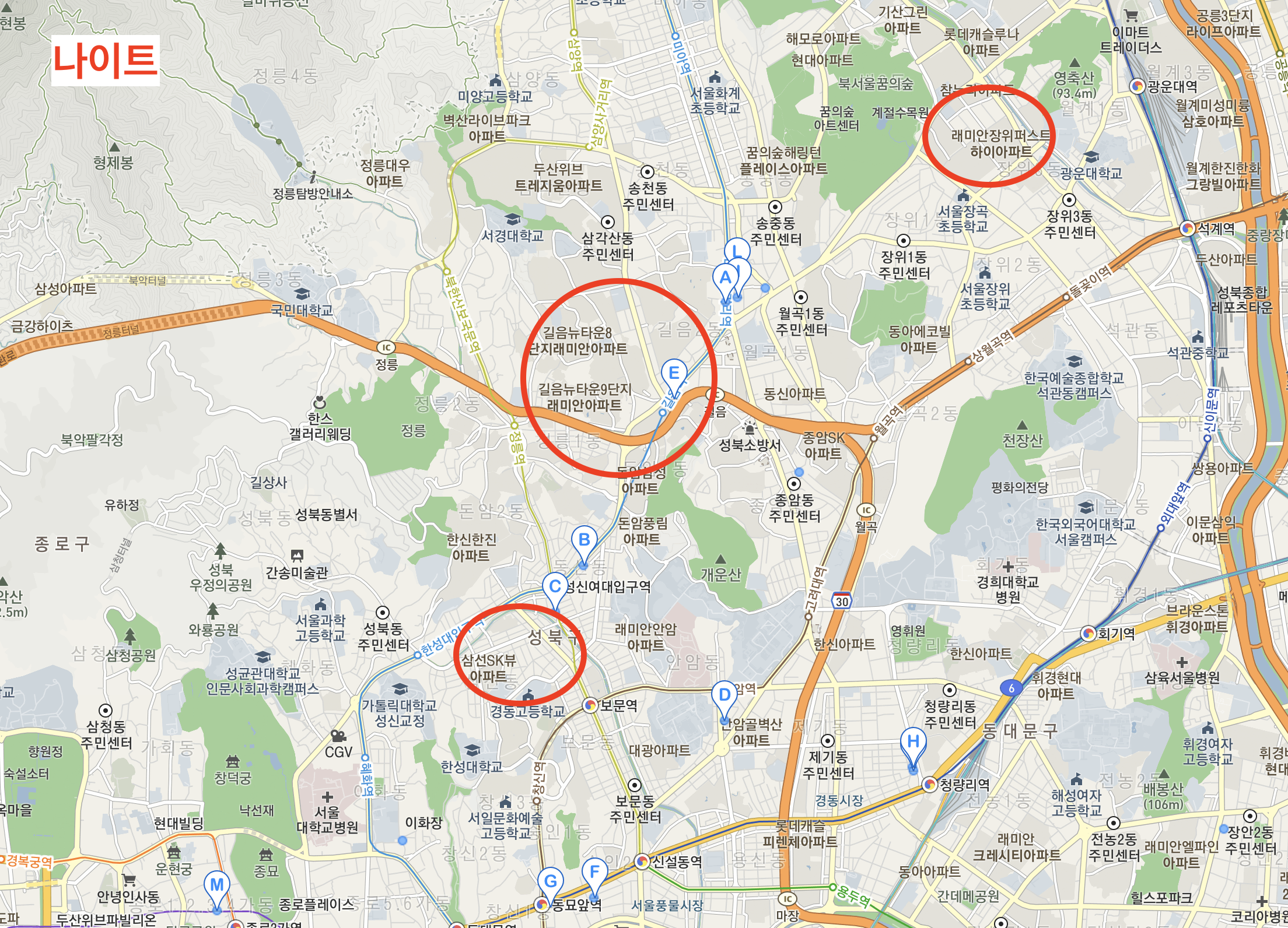 이번엔 성북구로 가보기로 한다. 궁금한 건 정릉동이었는데, 역시나 정릉동만 보기엔 지엽적이라 성북구를 선정했다. 요즘 계속 대단지 아파트만 살펴보다 보니, 서울은 꿈도 못 꾸겠다 싶어 경기도 위주로 살펴봤었다. 실제로 안양쪽 지역을 알아볼까 하기도 했고. 그러다 생각을 고쳐먹게 된 것이 대단지가 아닌 서울 아파트들은 살기가 불편할까? 라는 의문에서 부터였다. 대단지라고 하면 1,000 세대가 넘고, 부지 자체가 넓으며 내부 커뮤니티가 잘 꾸며진 곳 정도인 아파트를 개인적으로 생각하고 있었다. 그러다보니 자연스럽게 아파트를 볼 때 1,000 세대가 넘지 않으면 아예 보지도 않게 되었었다. 그런데 잘 생각해보면 굳이 내 기준에 맞추지 않더라도 좋은 아파트들은 많았고, 서울 내 1,000 세대가 넘지 않는 아파트들도 굉장히 많았다. 그런 매물들을 다 거르다보니 살만한 집이 없다고 생각했던 것 같다. 대단지가 아닌 아파트들을 살펴보는 첫 걸음이라고 생각하고 신중하게 분석해보기로 한다. 직장의 위치를 고려했을 때, 서울 성북구라면 직주근접 측면에서 장점이 있을 터이니.