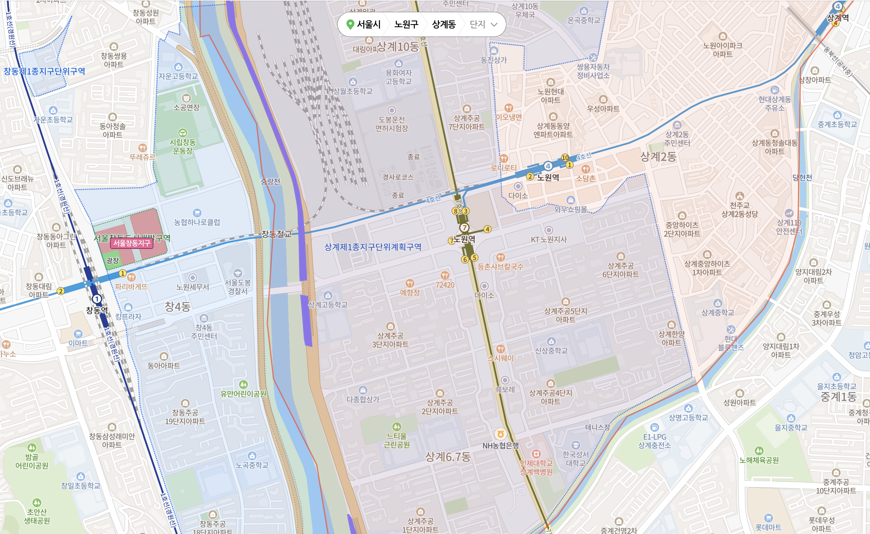 상계제1종지구단위계획구역은 노원역, 마들역, 중계역 일부, 창동역 우측을 커버하는 광범위 개발사업이나, 기간조차 미정이므로 아파트 가격에 어떤 영향을 주긴 어려울 것으로 보인다.