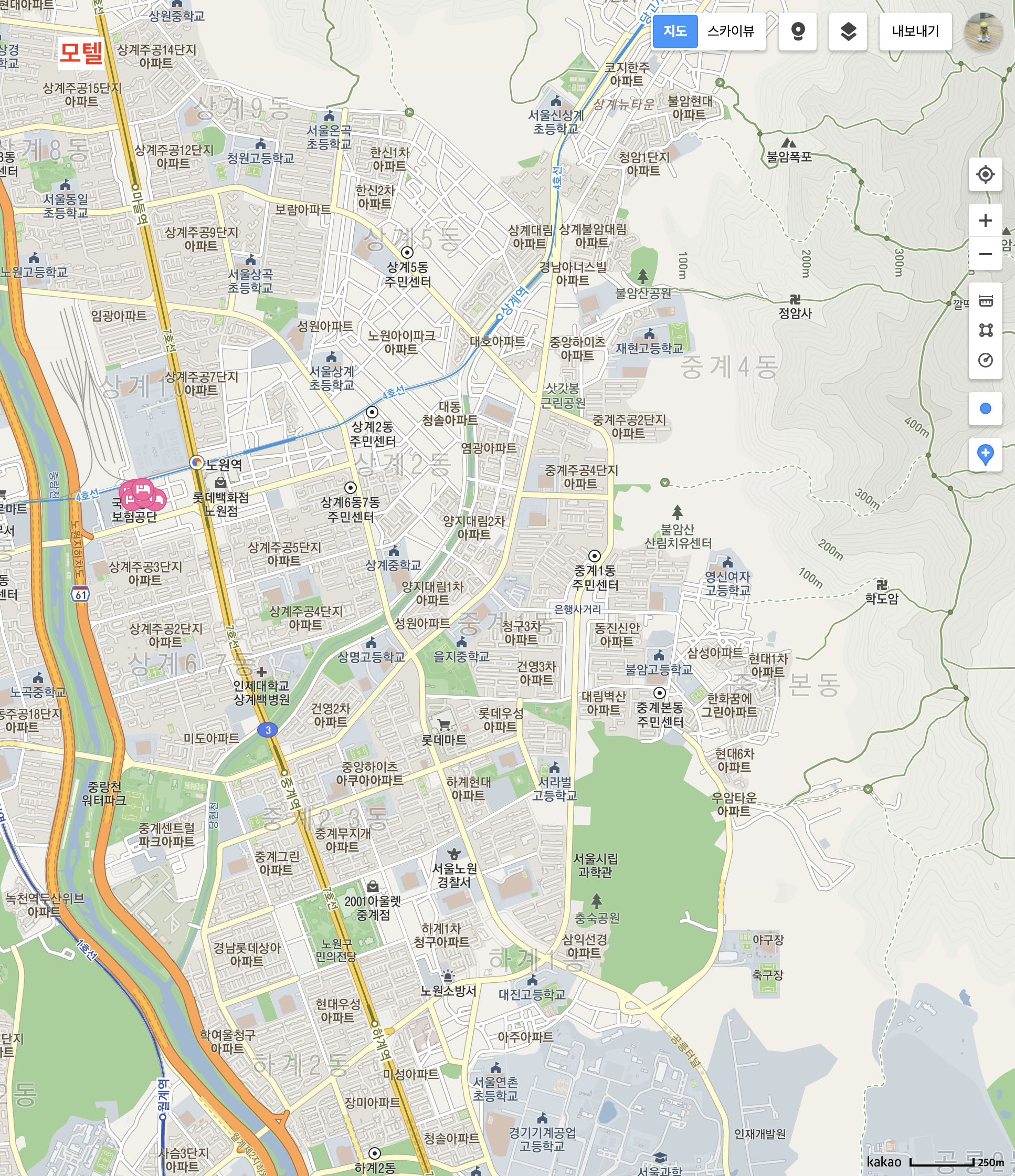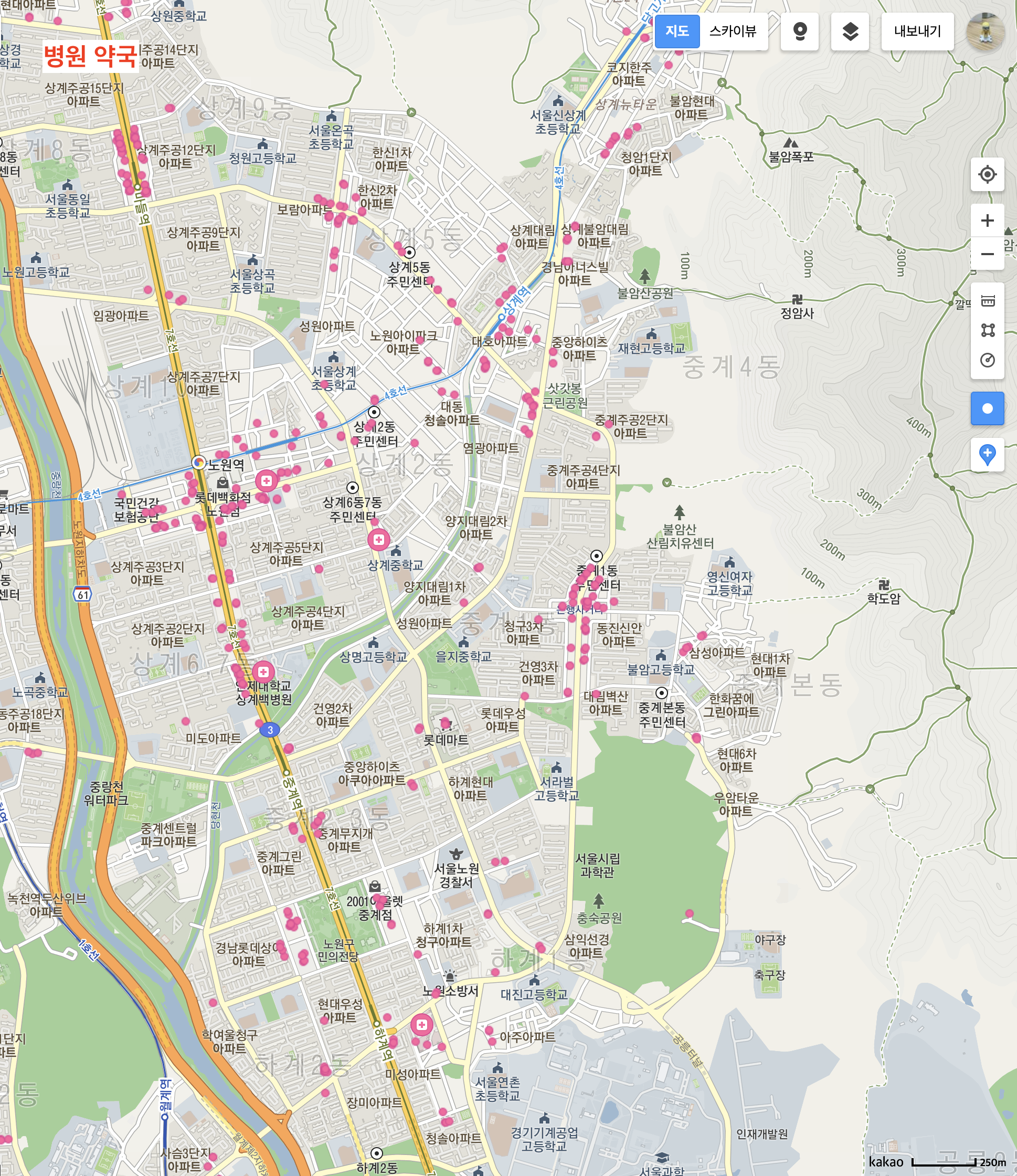 모텔은 고사하고 단란주점은 검색해도 잘 안나오는데, 노원구는 의외로 정직하게(?) 나오는 것 같다. 선호 대상이 노원구에 많았던 것과 비례하여 기피 대상도 다수 존재한다는 것을 알 수 있다.